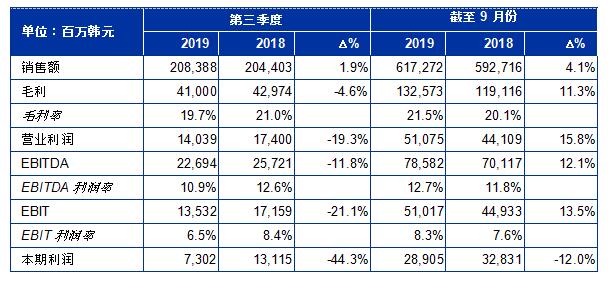 SONGWON產業集團發布2019年第3 季度財務業績報告