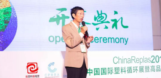 ????????聚光燈下,中國合成樹脂協會塑料循環利用分會(CPRRA)常務副會長王旺作為主持人和第一發言人走向舞臺中央,就塑料循環的本質發出了他的哲學思考。