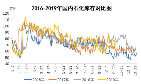 ????????2019年以來,從國內石化主要塑料產品庫存情況來看,一、二季度受需求低迷,國內產能不斷增加預期等因素影響,庫存高于往年季節性同期,但進入三季度,塑料下游主要需求數據向好,塑料制品產量與塑料制品出口量恢復增長,石化庫存去化理想,庫存陸續接近往年季節性同期水平。尤其8月底及9月份,國內石化庫存水平已經明顯低于前三年歷史水平。進入10月份,由于國慶假期原因,庫存快速累積至歷史高位,但受中美貿易關系緩和,重啟貿易談判以及沙特突發“黑天鵝”事件利好原油等宏觀因素利好,石化庫存快速下降和,截止10月份下旬,石化庫存已經低于2018年同期6-7萬噸。