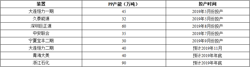 ????????2019年國內(nèi)PP裝置新增產(chǎn)能匯總