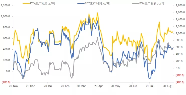 ????????最近聚酯產(chǎn)業(yè)鏈下游利潤(rùn)和開(kāi)工率齊升,說(shuō)明終端對(duì)聚酯的需求還不錯(cuò),上游讓渡的利潤(rùn)也盤活了下游企業(yè)。長(zhǎng)絲的產(chǎn)銷最近也有所回升,8月份平均產(chǎn)銷率為83%,基本上與去年同期持平,反觀7月份的平均產(chǎn)銷率只有55%,8月份下游真的是有很大起色,但是上游PTA毫無(wú)起色。