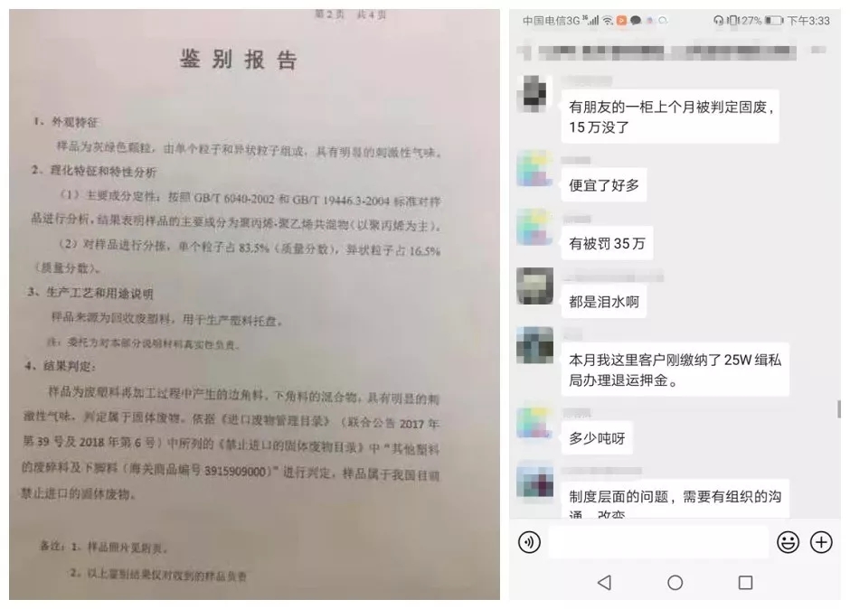 ????????近期,有企業反映,進口的再生顆粒被判為固廢,罰款最低10萬,也有高達35萬的,海關責令其退運,還需繳納1噸1萬元的退運押金。而在去年,罰款金額相對少一些。