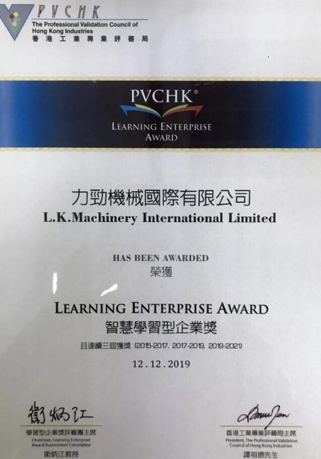 經過自我評估、評審專員初評和獨立終審委員會專家的最終客觀審定,力勁集團在資源投入推動人才培訓”、“系統化管理人才發展”、“資訊科技應用”、“策略運用”、“企業文化五個標準、五十項細節方面達到評審標準,榮獲“2019智慧學習型企業獎”。力勁集團CEO劉卓銘先生、董事會主席張俏英女士出席頒獎典禮。