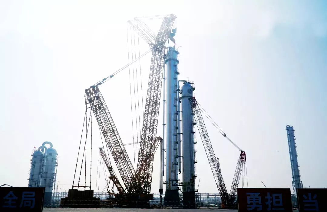 目前,乙烯裝置急冷水塔、急冷油塔、乙烯塔、1#丙烯塔和2#丙烯塔5個超千噸級大型設備陸續(xù)順利吊裝就位,標志著項目乙烯裝置建設取得階段性勝利,設備安裝工作將迎來新一輪高峰。