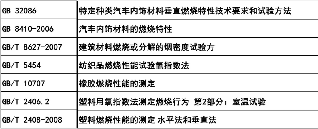 ????????汽車內飾材料燃燒性能常用標準