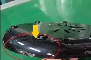 ????????產品表面白霧,從視覺角度來講,它呈現的是白色狀,所以在白色產品時亦不明顯,黑色高光最為明顯,如圖1所示,該產品為PP材料生產,周邊表面呈現出大大小小的白色斑紋,像云霧般的癥狀,這里歸類為白霧。