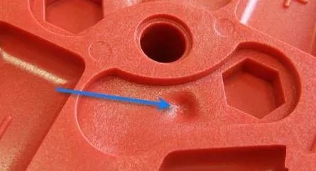 ????????在產品生產過程中,產品凹痕和氣孔是不良現象中發生頻率最高的,注入模具的塑料在冷卻時發生體積收縮,早冷卻部分即表面首先硬化,內部就會產生氣泡;
