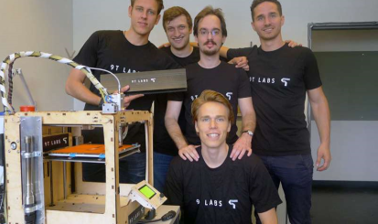 圖為9T實驗室團隊的成員,從左至右依次為Giovanni Cavolina,,Filippo Kusch,Sel?uk Ercan和Martin Eichenhofer, 最前方靠近3的打印機的為Chester Houwink。圖片來源:9T實驗室
