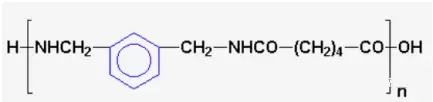????????尼龍-mxd6是由三菱氣體化學公司從m-xylenediamine(mxda)生產的廣泛的聚酰胺的通用名稱。它是由間苯二甲胺mxda與己二酸的縮聚而產生的結晶聚酰胺。與尼龍6和尼龍66不同,尼龍mxd6是一種脂肪族聚酰胺,其主鏈中含有一個芳環。化學結構如下: