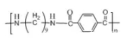 ????????英文名:Polyamide9T or Nylon9T;簡稱PA9T。尼龍-9T,又稱聚酰胺-9T,即聚對苯二甲酰壬二胺。其分子結構式為: