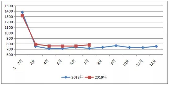 ????????按每月規模企業統計:1-7月中國規模以上工業企業初級形態塑料產量累計為5165.1萬噸,同比增長3.27%;其中,7月份產量為779.3萬噸,環比增長2.59%,同比增長9.15%。