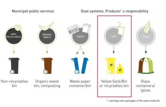 德國回收體系,黃色塑料袋收集的可回收垃圾(來源:德國綠點公司)